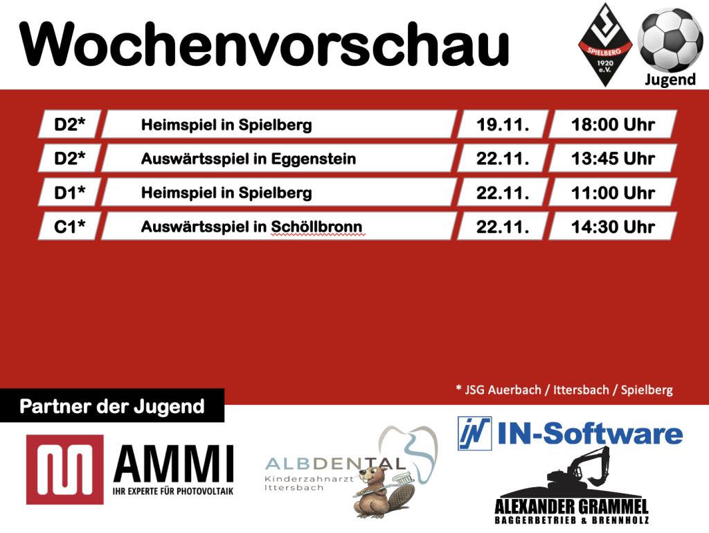 Die letzten Vorrundenspiele werden ausgetragen. D2 mit noch einem Nachholspiel und am Samstag mit einem Auswärtsspiel in Eggenstein. Die D1 macht das Vorspiel am Samstag vor der 1. Mannschaft und beendet anschließend die Vorrunde und die C1 reist nach Schöllbronn.