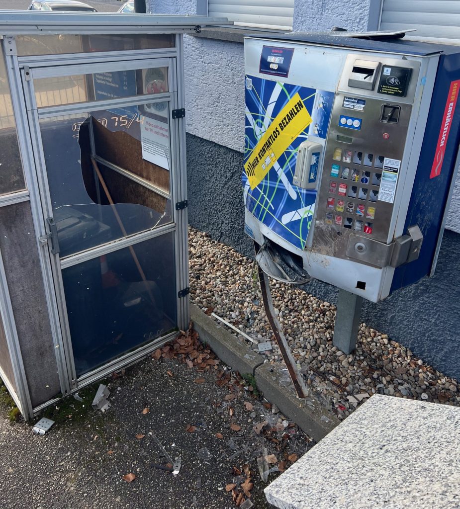 In der Nacht von Samstag (28.02.) auf Sonntag (01.03.) wurde gegen 4.30 Uhr der auf dem Sportgelände des SV Spielberg befindliche Zigarettenautomat gesprengt.